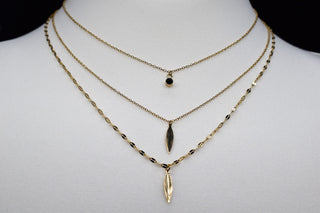 Modische Multi Layer Halskette aus Titan Stahl, mit Feder Anhänger und einem schwarzen Zirkon, für Frauen