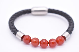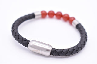 Parisi Armband - schwarzem geflochtenem Leder - Rote Jadesteine - Mann - Herren - Inkl. Weiße Schmuckschachtel