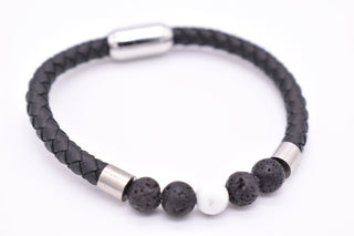 Parisi Armband - schwarzem geflochtenem Leder - Lavasteine- Howlite Steine - Mann - Herren - Inkl. Weiße Schmuckschachtel