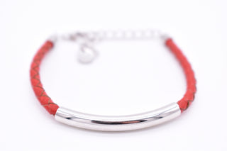 Parisi Armband verstellbar - geflochtenes Leder in rot- Verschluss Silber 925er - Frauen - Männer - Inkl. Weiße Schmuckschachtel