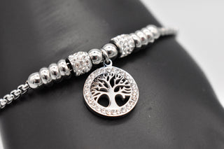 Parisi Titan Stahlarmband, Anhänger mit Lebensbaummotiv und Kristallverzierung